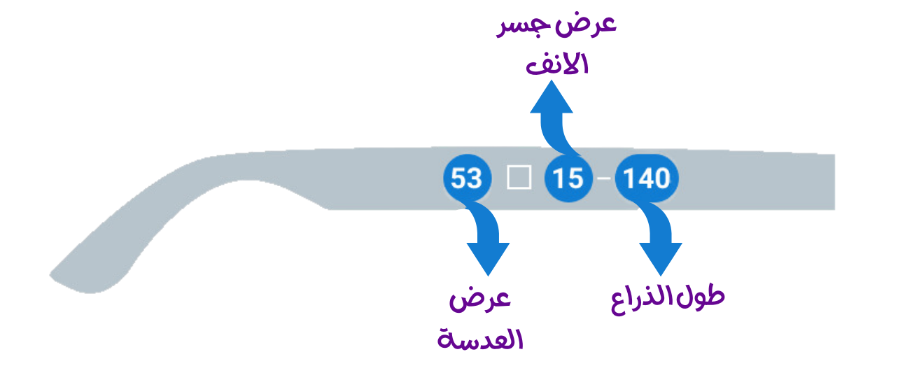 إذا كان طفلك يمتلك نظارة بالفعل، يمكنك معرفة مقاس إطاره بسهولة. ما عليك سوى أن تلقِ نظرة داخل إحدى الأذرع، حيث ستجد أرقامًا. تُعبر هذه الأرقام عن عرض العدسة وعرض جسر الأنف وطول الذراع بكل سهولة كما هو موضح بالصورة,